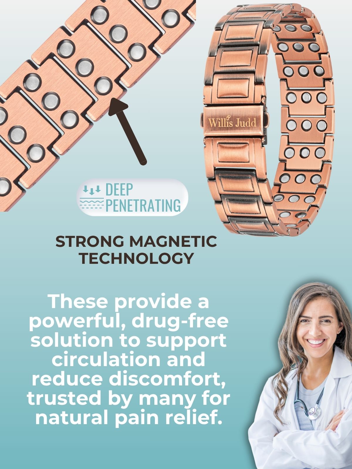 Beware of cheap imitations with weak magnets and poor-quality metals. For over 15 years, Willis Judd has been trusted by thousands for our handcrafted copper and titanium magnetic bracelets, designed for lasting comfort and real results. Join our community of satisfied customers and choose a brand that stands for quality, style, and trust.